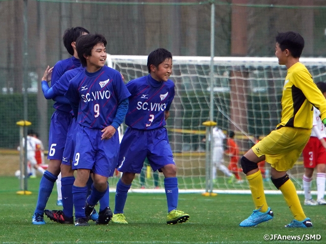 両チームの集中したディフェンスで1点を争う好ゲームとなったのが、グループEの和歌山ヴィーヴォU-12まつえ(和歌山)と名古屋グランパスU-12(愛知)の一戦です。互いにゴール前までスピーディーに運んでチャンスをつくりますが、和歌山のGK津守貫汰選手と名古屋のGK平野稜太選手がファインセーブでゴールを死守。フィールドプレーヤーもシュートブロックに入るなど体を張り、ゲームは終盤までスコアレスで進みます。均衡が破れたのは最終盤の37分。和歌山の谷口央典選手が鮮やかなミドルシュートを左足で決め、貴重な先制点を奪取しました。これが決勝点となって和歌山が勝利しています。