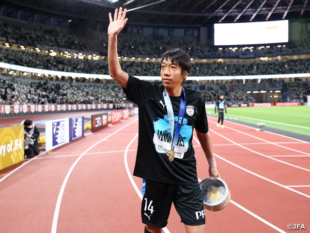 決勝という大舞台でもいつも通りのプレーを心掛けていました。タイトルを獲得することができたのは率直にうれしいですし、勝利に貢献できたのも良かったです。でも、もっと楽に試合を進められたという思いもあります。前半のチャンスで決めることができれば、(中村)憲剛さんが出場できたかもしれません。反省点は多々ありますが、それらを次に生かして、さらに先へと進んでいきたいと思います。