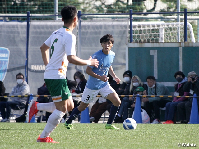 12日の横浜FC・LEOCトレーニングセンターでは、横浜FCユース(神奈川)と首位を走る青森山田高校(青森)が対戦しました。青森山田は勝てば優勝が決まるという状況です。これに対して横浜FCは「優勝も降格もない状況」(重田征紀監督)ではあったものの、やはり「これが最後の試合なので」(重田監督)と気合は十分。試合前から青森山田に負けじとベンチの選手を含めて声を出し合い、勝利を狙います。