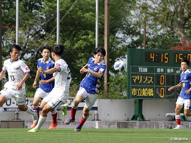 2位の横浜F・マリノスユース(神奈川)は、リーグ再開戦となった前節の流通経済大学付属柏高校(千葉)戦を4-1で快勝し、川崎Fとの勝ち点差を2に縮めました。13試合で41得点の強力な攻撃陣は健在で、市立船橋高校(千葉)と対戦する今節も大量得点となるでしょうか。対する市立船橋は11位と苦しい戦いが続きます。前節の横浜FCユース(神奈川)戦はFW郡司璃来選手(#10)のゴールで今シーズン3勝目を挙げており、勢いに乗って初の連勝を目指します。