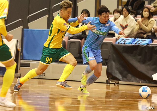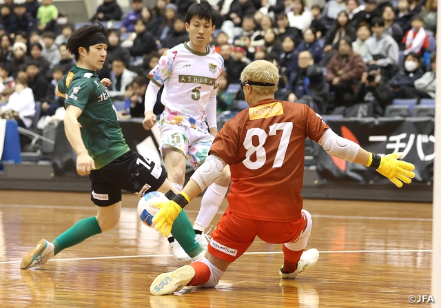 岸和田市総合体育館(大阪)の第4試合では、今季F1で1勝に留まったヴォスクオーレ仙台(F1/宮城)がF2で2位となったエスポラーダ北海道(F2/北海道)と対戦。序盤から得点を重ねた仙台が、F2最優秀選手に輝いた室田祐希選手を中心とする北海道相手に要所を締める戦いぶりを見せて6-2で勝利し、2回戦に進みました。