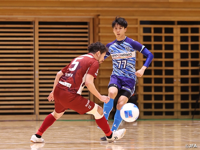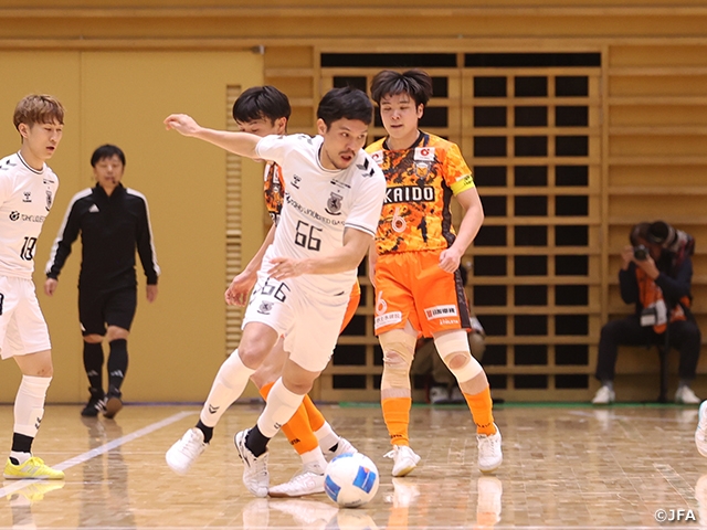 しながわシティ(F1/東京)とフウガドールすみだ(F1/東京)による試合は、開始2分に山田凱斗選手のゴールで先制したしながわが試合を優位に進めていきます。11分には、藤川侑哉選手が技ありのヒールシュートで追加点。PKで1点を返されたものの第2ピリオドにも新井裕生選手、平田 ネト アントニオ マサノリ選手のフットサル日本代表コンビがゴールを決めて、4-1で勝利しました。