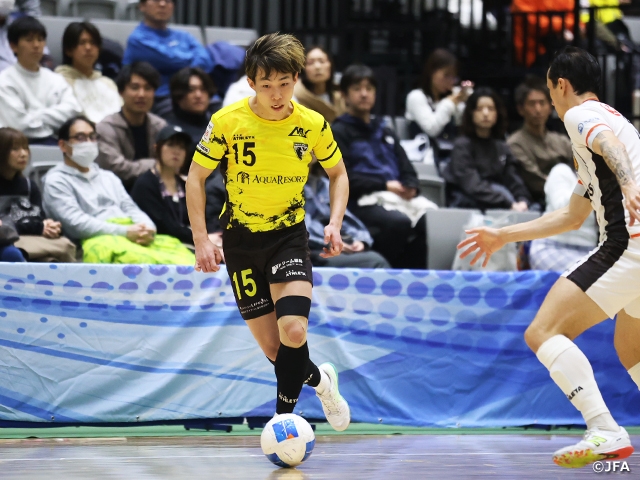 バルドラール浦安(F1/千葉)とY.S.C.C.横浜(F1/神奈川)の一戦は4分、カウンターから横浜が先制します。それでも15分、浦安はキックインからロドリゴ選手のパスを受けた荒川勇気選手が同点ゴールを決めると、その2分後には長坂拓海選手がCKからボレーシュートを決めて逆転に成功。浦安は第2ピリオドもゴールを重ね、5-2で横浜を破って準決勝に進みました。