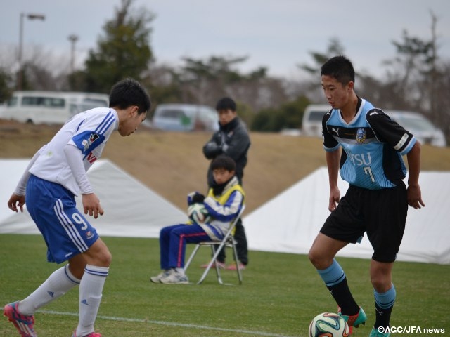 ひたちなか市総合運動公園スポーツ広場Aの第2試合では、神奈川県勢の横浜F・マリノスジュニアユース追浜(関東6)と川崎フロンターレU-15(関東5)が接戦を演じました。