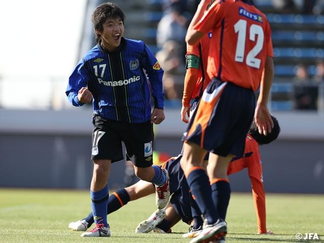 「高円宮杯が一年を締めくくる大会ということもあって、それまで一緒にプレーしてきた先輩たちに優勝を経験させてあげたいという気持ちが強かった」と堂安選手。全5試合に出場すると、決勝での2得点を含む計4得点の活躍を見せて優勝に貢献しました。