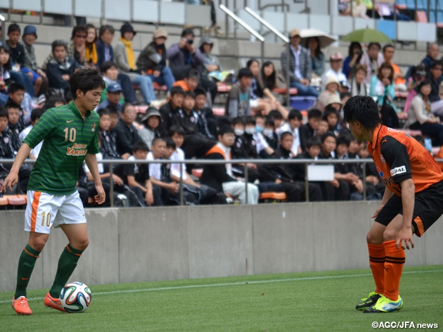 早い時間に先制されましたが、焦らず僕たちのサッカーを貫けば追い付けると思っていましたし、実際、前半のうちに同点にすることができました。ただ、2-1とした後の戦い方には悔いが残ります。前節の市立船橋戦では、2-0とリードしていながら、後半に集中力が切れて追い付かれただけに、「今回は最後まで頑張ろう」とチーム全員で話していたのですが…。試合ごとに攻撃の形をつくる回数が増えている分、今後はチームとしてどう勝つかを突き詰めなければいけないと思います。
