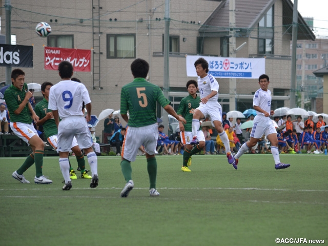 あいにくの雨の中、ここまでリーグ6位の青森山田高校(青森)と同最下位のJFAアカデミー福島(静岡)が熱戦を繰り広げました。