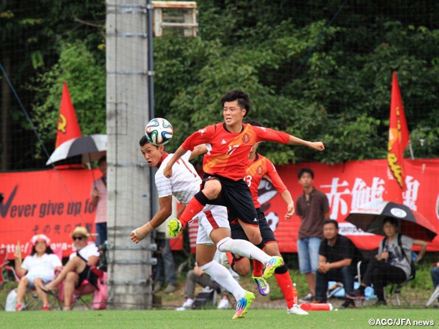 晴れてさらに蒸し暑くなった後半、両チームの選手たちに疲労の色が見え始めた時間に名古屋が再びスコアを動かしました。75分、川崎健太郎選手のパスを受けた青山選手が落ち着いて決め、リードを2-0に広げます。対する東福岡は、「追加点を決められて精神的ダメージを受け、運動量も少し落ちた」(森重潤也監督)ため、フレッシュな選手を投入して反撃を狙います。後半42分、藤井慶樹選手のクロスに中島賢星選手がゴール前で反応すると、最後は中村健人選手が決めて1点差に。このゴールで盛り返す東福岡は、残り時間で同点ゴールを狙いますが、名古屋の守備陣も最後まで集中を切らさず体を張って奮闘。試合は2-1のままタイムアップ、名古屋が勝利し、勝点を伸ばしました。