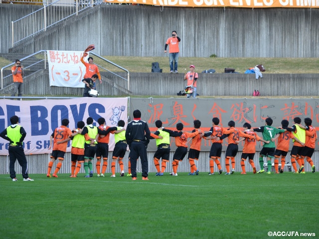 選手たちは、絶対に勝たなければいけない状況の中、よく結果を残しました。この一戦まで3試合無得点でしたが、深澤のゴールで吹っ切れたと思います。2得点を挙げた深澤はもともとDFで、ヘディングがとても強い。何回も競り合った結果、途中で足がつっていましたが、彼のハードワークもあって、勝つことができました。粘り強い三菱養和に同点とされた後も、あきらめずに頑張ったことで決勝点が生まれました。そこは評価したいです。