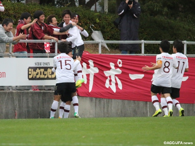 勝てば優勝が決まるヴィッセル神戸U-18(兵庫)と、敗れれば優勝の可能性がなくなるセレッソ大阪U-18(大阪)。「同じ関西同士なので負けたくない」(C大阪・岸本武流選手)と試合前から互いの意地がぶつかり合う一戦は、白熱した展開となりました。