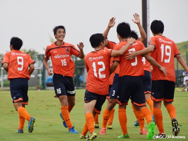 5連勝中の青森山田高校(青森)は、コンサドーレ札幌U-18(北海道)と対戦。この一戦も無失点を意識しつつ、攻撃時はセットプレーを軸に得点を狙います。ここ5試合で高橋壱晟選手が4得点、神谷優太選手が3得点と、中盤の選手が絶好調。前節は市立船橋高校(千葉)をシュート3本に抑えるなど、守備で試合のリズムをつくり、良い攻撃につなげることができています。この一戦も勝点3を積み重ね、大宮との次節に良い形で臨みたいところです。