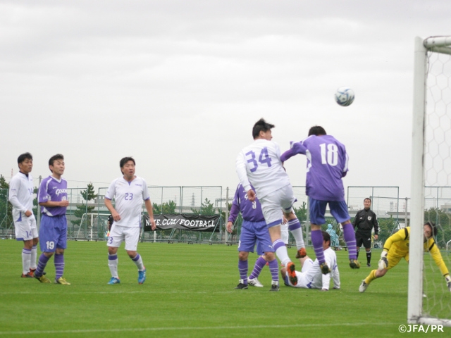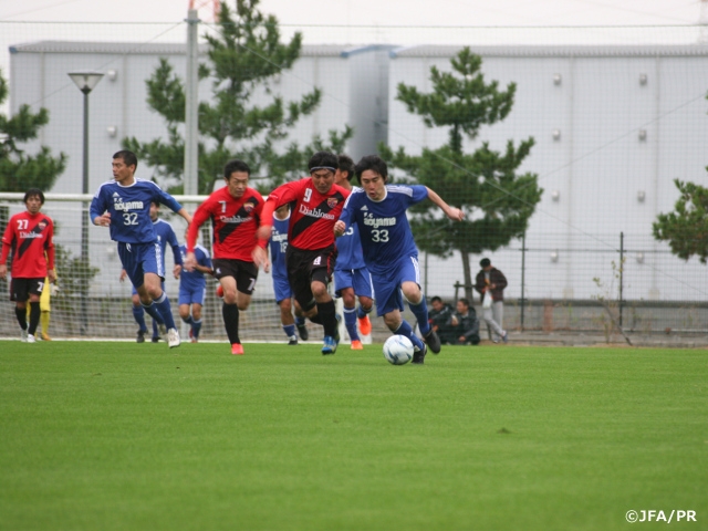 ディアブロッサ高田FCシニア(関西/奈良)を相手に0-0で前半を折り返したFC青山オーバー・フォーティ(関東3/東京)は、後半に2得点。五戸江渡FC40(東北2/青森)に3-0で勝利した富一ふじの会(北信越1/富山)とともに勝点3を手にして、グループCの首位を争います。