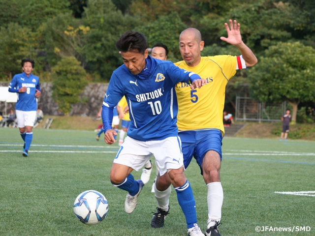 第4回全国シニア(40歳以上)サッカー大会は11月13日(日)、静岡県藤枝市の藤枝市総合運動公園サッカー場などで大会2日目を行い、決勝ラウンドに進む4チームが決定しました。