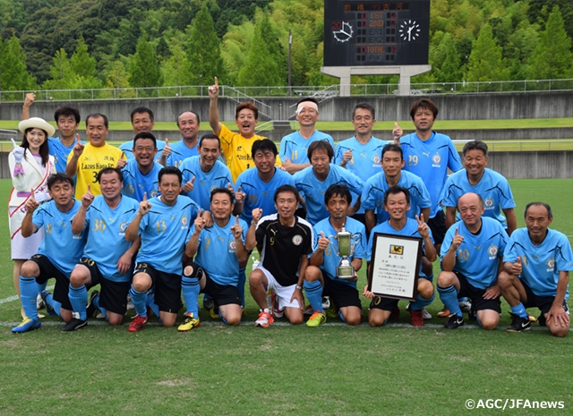 試合は古河壮年サッカー愛好会が4-0と優勢を保ったままタイムアップ。チーム初の全国制覇を成し遂げました。試合後、周囲から手荒い祝福を受けた岩永監督は、「チームとして、ゴールデンウィークも正月も返上して、毎日トレーニングを積んできた甲斐があった。日々の積み重ねが今回の結果につながった」と語り、選手たちの奮闘をねぎらいました。