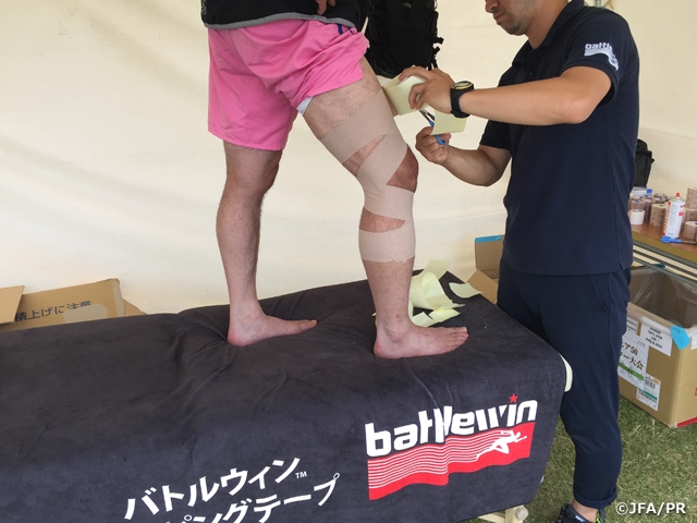 シニア選手の全力プレーを支えるためにテーピングサポートブース でニチバンがサポート~JFA Youth & Development Programme(JYD)~ニチバン国内競技開催事業