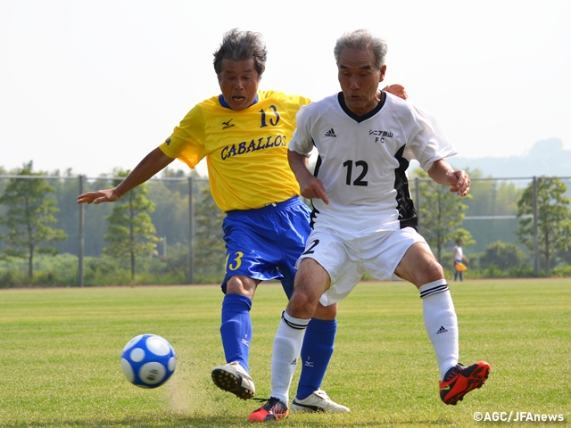 全国シニア(60歳以上)サッカー大会は同年代の日本一を決める大会とあって、選手たちの気合いも十分。現役時代、ヤンマーで釜本邦茂さんと共にプレーし、日本代表歴を持つ西村博治選手(大阪シニア60/大阪)は「2月以降、大阪近郊のチームと実戦形式の練習を重ねて、チームメイトとの連係を確認した」とコメント。徳島カバロスシニア60(徳島)は「60歳以上と70歳以上の選手が毎週日曜日に集まって、トレーニングを積んできた」と三谷淳一選手が語り、各チームが着々と準備を進めてきた様子が伺えます。