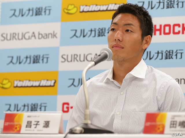 会見には日本サッカー協会 田嶋幸三会長、大会プレゼンティングスポンサーのスルガ銀行株式会社 岡野光喜代表取締役会長、また2015Jリーグヤマザキナビスコカップ王者として出場する鹿島アントラーズの石井正忠監督、昌子源選手が出席しました。
