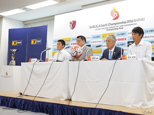 8月10日(水)に茨城県立カシマサッカースタジアムで開催する「スルガ銀行チャンピオンシップ2016 IBARAKI 鹿島アントラーズ 対 インデペンディエンテ・サンタフェ」の一戦を目前に控え、28日(木)、JFAハウスで記者会見を開催しました。