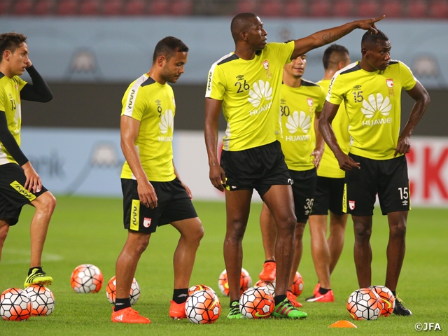 初出場ながら本タイトルを狙うインデペンディエンテ・サンタフェは6日(土)に来日し、試合時間に合わせて連日トレーニングを重ねてきました。「相手の速い展開に注意したい」とグスタボ・コスタス監督。前日会見では、両チームともに優勝への強い意欲を語っていました。試合は8月10日(水)19:00キックオフです。