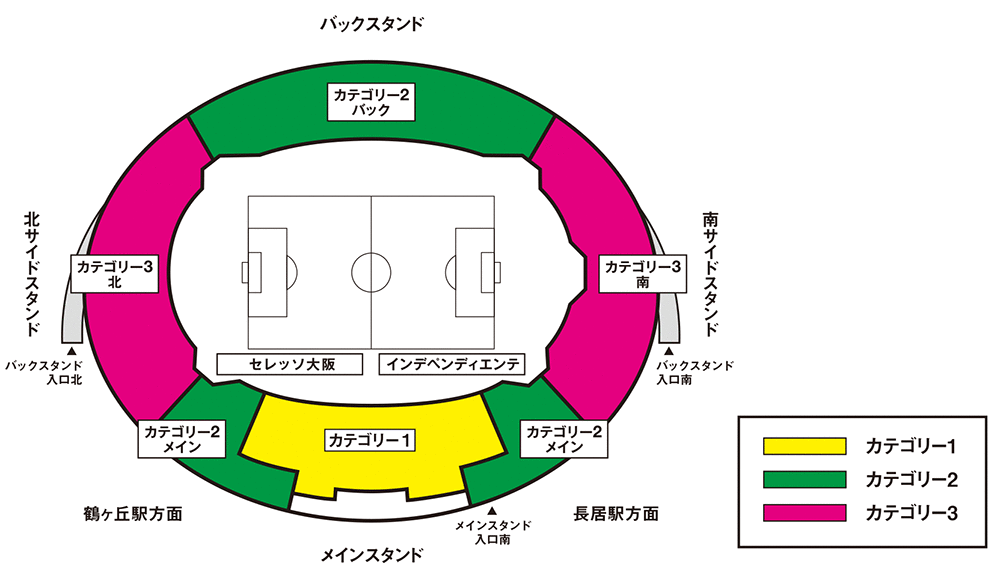 | カテゴリー3 ゴール裏 北 (セレッソ大阪 自由席) Categoría 3 Fondo gol norte (asiento libre afición Cerezo Osaka) |