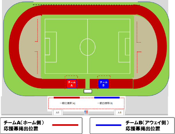 ※両ゴールの真後ろにつきましては、競技運営上支障をきたす恐れがあるため、応援幕の掲出はできません。