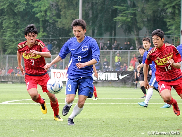 市立船橋高校(千葉)は流通経済大学付属柏高校(千葉)との千葉ダービーに挑みます。前期はスコアレスドローに終わったライバル同士の対戦とあり、今回の対戦にかける両者の意気込みは十分。連勝を狙う市立船橋としては、DF松尾勇佑選手(#3)によるサイド攻撃から勝機を見出したいところです。