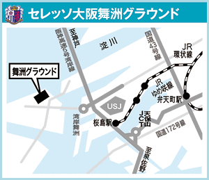 ●JR「桜島駅」より舞洲アクティブバス「セレッソスポーツパーク舞洲」下車、すぐ