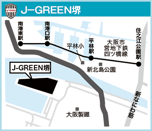 ●南海バス「J-GREEN堺南口」「J-GREEN堺クラブハウス前」下車、すぐ