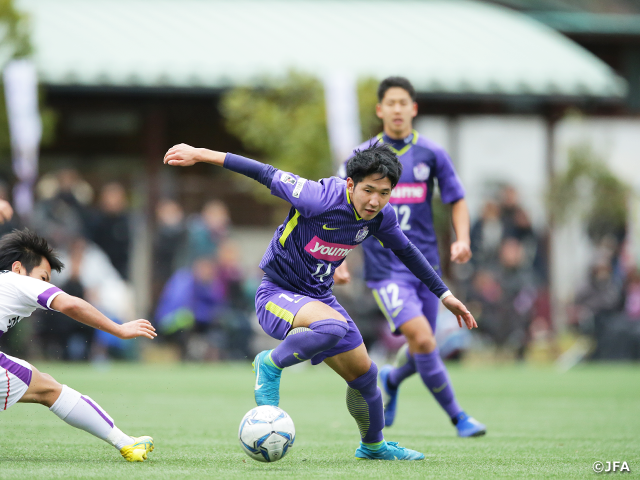 一方の広島は2年ぶりに西の王者に輝きました。開幕戦でヴィッセル神戸U-18(兵庫)に敗れ、黒星スタートとなった今シーズンでしたが、混戦模様のリーグ戦で粘り強く勝点を積み重ねていきます。1位で迎えた最終節は、勝てば優勝が決定する京都サンガF.C. U-18(京都)との首位攻防戦。17分にFW大堀亮之介選手(#14)のゴールで先制すると、後半に攻撃陣が大量得点を挙げます。終わってみれば6-1の大勝を収め、ファイナルへの出場権を手中に収めました。