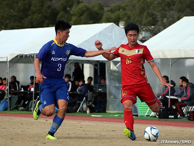 2点のリードを奪ってからは流れが一変し、金光大阪に押し込む場面が増えました。後半の新潟明訓はシュート1本に終わるなど、苦戦を強いられましたが、「しんどかったけど、全員で声をかけながら頑張ることができた」(小澤選手)と全員で我慢強い守備を披露し、逃げ切りに成功。愛媛FC U-18(四国/愛媛)との2回戦に駒を進めました。
