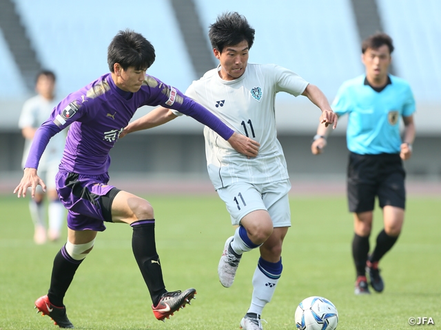 ヤンマースタジアム長居に舞台を移した第3試合は、セレッソ大阪U-18(大阪)と東福岡高校(福岡)が激突。「相手より運動量が多くて、最後まで切らさずに走り切れた」と、國府田駿選手(MF #6)が話す通り東福岡が走力を生かした戦いで試合を優勢に進めると、C大阪の足が止まった試合終盤に2点を奪い、快勝。森重潤也監督は「苦手とする相手から結果を残せただけで満足。難しい開幕戦で勝点3を取れたのは今後を占う上でも大きい」と口にしました。