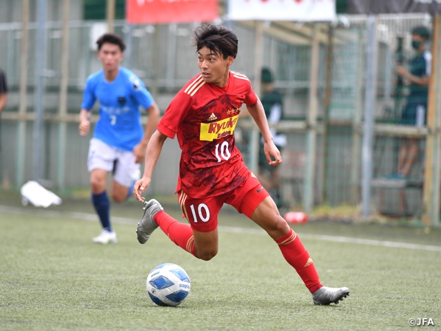 流経大柏は、前節3得点を奪って勝利した柏レイソルU-18(千葉)との“千葉対決”に臨みます。流経大柏は開幕戦でシュートを14本放つもいずれも空砲となり、スコアレスドローに終わりました。今節も積極的な姿勢は崩さず、昨シーズンは2年生ながらプレミアリーグEASTで9得点を挙げたFW森本一斗選手(#10)を中心に柏ゴールに迫ります。