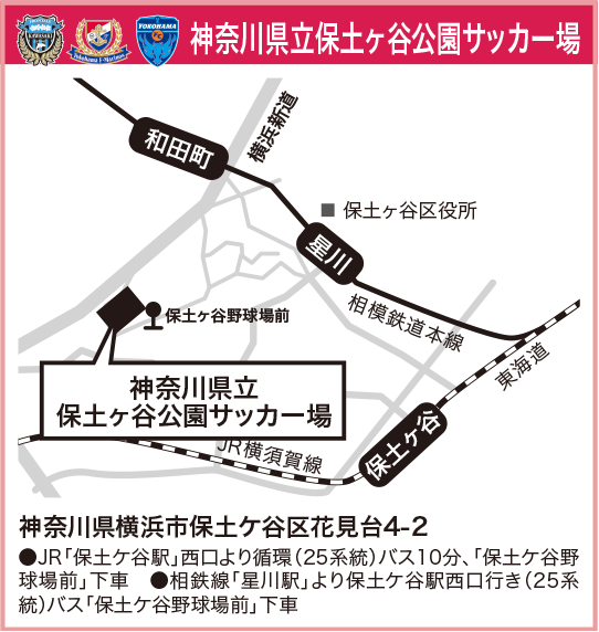 ●JR「保土ケ谷駅」西口より循環(25系統)バス10分、「保土ケ谷野球場前」下車