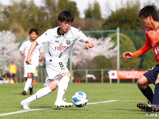 プレミア初参入ながら開幕戦で勝利した川崎フロンターレU-18(神奈川)は、ホームに流通経済大学付属柏高校(千葉)を迎えての一戦です。前節の大宮アルディージャU18(埼玉)戦では試合開始から積極的にゴールを狙い、前半だけで8本のシュートを放ちましたが実らず。60分にMF川口達也選手(#8)がPKを決めて1-0で勝利しました。一方、今シーズンの初戦を迎える流経大柏は、過去にプレミアリーグ優勝も降格も味わってきました。チームとしての経験値の差を結果に結びつけることができるでしょうか。