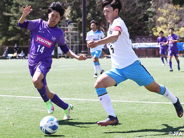 4月2日(土)と3日(日)に行われた開幕戦で勝ち点3を手にしたのは4チームです。そのうち昨年度のEAST王者である青森山田高校(青森)とFC東京U-18(東京)が開幕連勝を懸けて直接対決に臨みます。青森山田は市立船橋高校(千葉)との開幕戦で、スローインの流れからDF小林康人選手(#15)が先制ゴールを挙げると、終盤に得たPKで相手を突き放しました。一方のFC東京はJFAアカデミー福島U-18(静岡)と対戦し、ロングボールを使いながら序盤にゴールをこじ開け、4-1で勝利。両チームにとってセットプレーやロングボールへの対応といったタフさが問われる一戦になりそうです。