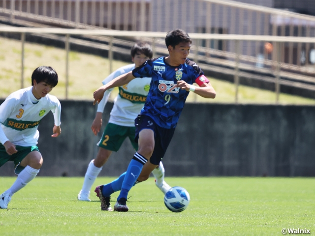 3位の静岡学園高校(静岡)は大津高校(熊本)との対戦です。静岡学園は直近3試合は1勝2敗と開幕から続いた勢いもやや落ち着いた印象です。一方の大津は現在、1勝1分け6敗で最下位に沈んでいます。白星は第2節のヴィッセル神戸U-18(兵庫)戦から遠ざかっていますが、2試合連続ゴール中のキャプテン、FW小林俊瑛選手(#9)を中心に状況の打開に挑みます。開幕戦では4-0で静岡学園が快勝。リーグ戦の半分が経過し、今回はどのような結果が待っているでしょうか。