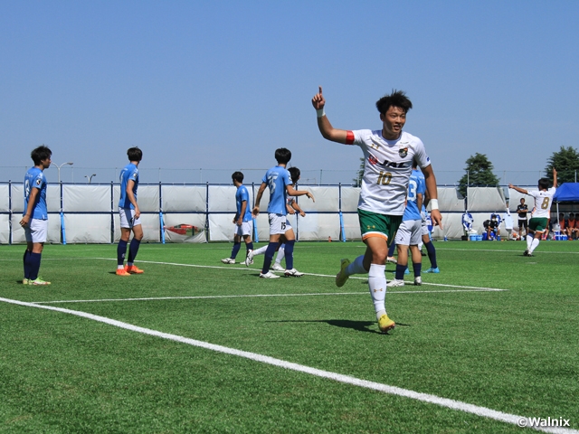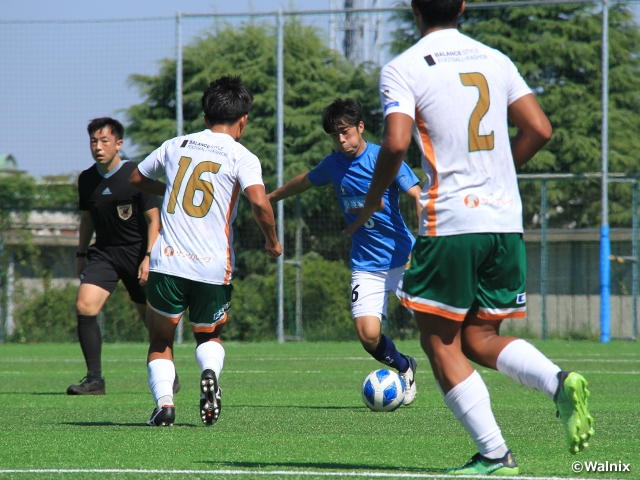 2位の横浜F・マリノスユース(神奈川)と3位のFC東京U-18(東京)による上位対決は、横浜FMがFW内野航太郎選手(#9)の2ゴールでリードしますが、FC東京が前半に1点を返し、試合終盤の90分にMF俵積田晃太選手(#11)が同点ゴールを決めて引き分けに終わりました。JFAアカデミー福島U-18(静岡)をホームに迎えた桐生第一高校(群馬)は、前半に先制点を許しましたが、71分と77分に連続ゴールを決めて逆転勝利を収めました。流通経済大学付属柏高校(千葉)と大宮アルディージャU18(埼玉)の一戦は、前半に2点を挙げた大宮が試合の主導権を握り、今シーズン8勝目で3位に浮上しました。柏レイソルU-18(千葉)と市立船橋高校(千葉)による千葉県対決は、82分のFW山本桜大選手(#9)のゴールでホームの柏に軍配が上がりました。首位の川崎フロンターレU-18(神奈川)は、33分のMF尾川丈選手(#17)のゴールで前橋育英高校(群馬)を破り、4試合ぶりの勝利をつかみました。