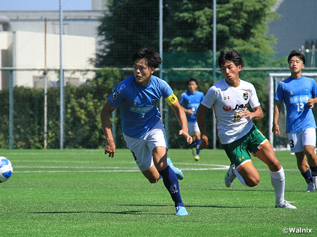 首位の川崎フロンターレU-18(神奈川)は横浜FCユース(神奈川)をホームに迎えます。前節の市立船橋高校(千葉)戦は、59分にCKからDF元木湊大選手(#29)のヘディングシュートで先制しますが、後半アディショナルに追いつかれてしまい、勝ち点1を分け合うことに。これで9月のリーグ再開後は1勝1分け2敗。依然として黒星が先行しています。勝ち点3差で2位の横浜F・マリノスユース(神奈川)が迫ってきているだけに、横浜FCとの一戦は是が非でも勝利したいところでしょう。一方の横浜FCは現在6位。9月以降は3勝1分け1敗と調子の良さをうかがわせています。前節も前橋育英高校(群馬)を相手に均衡した試合を展開し、89分のMF加藤嵩寅選手(#14)のゴールで白星を手繰り寄せました。今節もその勢いを首位相手に見せれられるでしょうか。