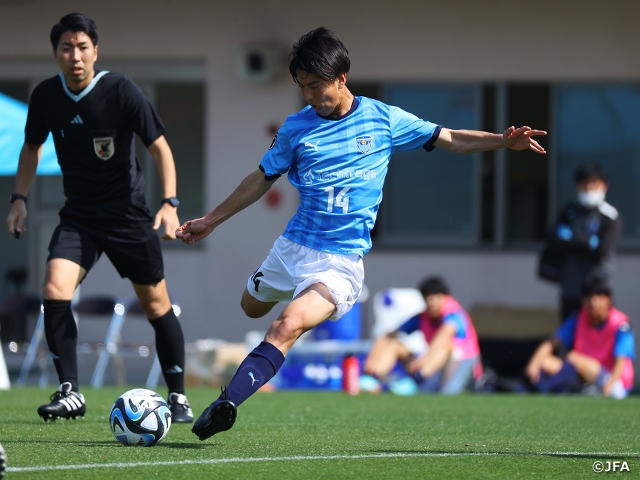 今年度、EASTから戦いの場を移した横浜FCユース(神奈川)は、昨年のWESTで2位のヴィッセル神戸U-18(兵庫)と対戦しました。この試合では途中出場の2選手が得点を挙げました。64分にFW渡辺隼斗選手(#48)のゴールで神戸が先制するも、横浜FCは87分にMF笹歩睦選手(#19)が同点ゴール。試合は1-1の引き分けに終わりました。横浜FCにとってはWEST初戦で昨年の上位チームを相手に追い付いて、勝ち点1を挙げたことは今後の戦いへの自信となるでしょう。第2節で横浜FCは、大津高校(熊本)との開幕戦を5-1で快勝した静岡学園高校(静岡)と対戦します。一方の神戸は、こちらも4-1で履正社高校(大阪)を撃破した東福岡高校(福岡)と相まみえます。
