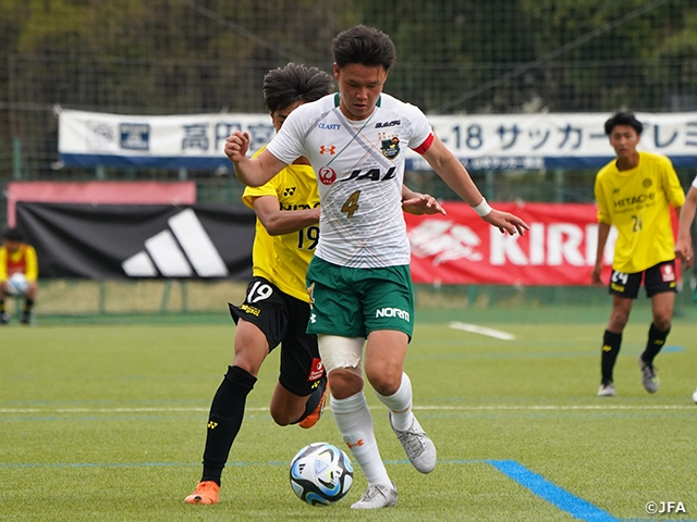首位の青森山田高校(青森)はアウェイで市立船橋高校(千葉)との対戦を迎えます。青森山田はここまで6勝1分け1敗と快進撃を続けています。チームを支えるのは、キャプテンを務めるDF山本虎選手(#4)を中心にリーグ最少失点(7失点)を誇る守備陣。攻撃でもFW米谷壮史選手(#11)がリーグ2位の8得点を挙げるなど、攻守ともに隙のないチームとなっています。今節対戦する市立船橋は、2勝5分け1敗で5位。引き分けが多いシーズンの立ち上がりとなりましたが、直近2試合で連勝を飾り、上位進出へ勢いに乗っているところです。チーム状態が良いチーム同士の一戦は見ごたえのあるものになりそうです。