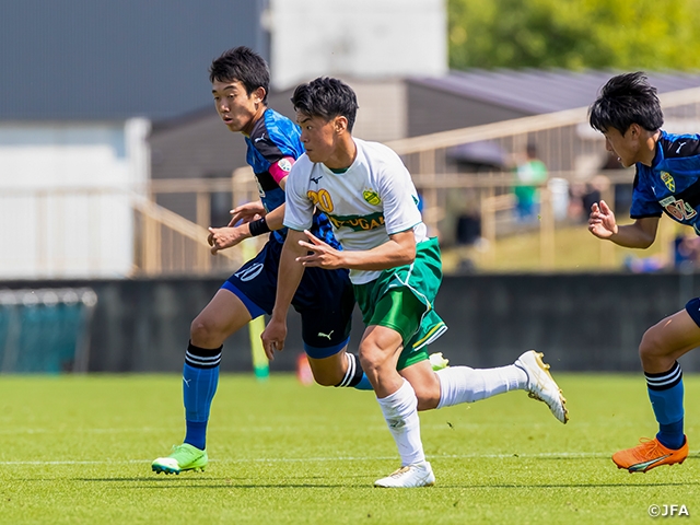 WEST首位の静岡学園高校(静岡)は履正社高校(大阪)と対戦します。静岡学園は5勝2分け1敗と好調を維持しています。前節のサガン鳥栖U-18(佐賀)戦では87分にこの試合2度目のリードを許しますが、90+1分にMF大村海心選手(#20)が同点ゴールを挙げ、勝ち点1を積み重ねました。対する履正社はここまで3勝5敗で10位。8試合で22失点と失点の多さが目に付きます。攻撃的なサッカーを志向する静岡学園との一戦では打ち合いとなるか、それとも守備陣が踏ん張るか、履正社の戦い方もゲームの行方を左右しそうです。