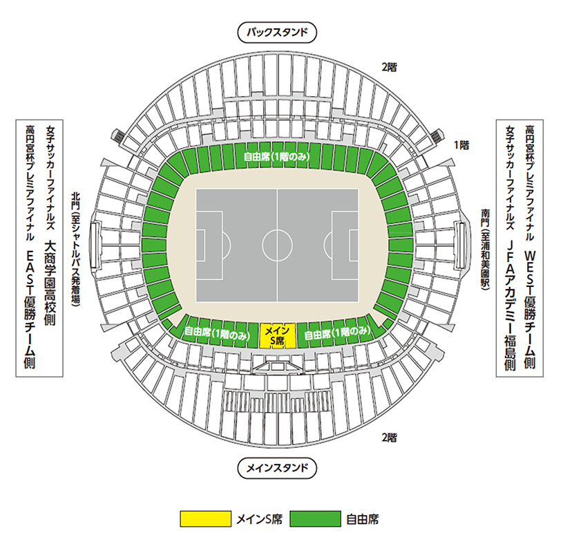 - JFA登録者(JFA登録選手[フットサルを含む全種別]、JFA登録監督、JFA登録審判員・審判インストラクター、JFA登録指導者)、日本サッカー後援会会員、小学生以下のお子様は、無料で自由席入場が可能です。南総合案内所にて、登録証、年齢確認ができる証明書等と引き換えに招待券をお渡しします。事前にチケットを購入してしまった場合、代金の払い戻しは一切できませんのでご注意ください。