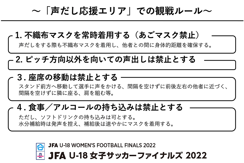 本大会は、新型コロナウイルスの感染拡大対策として、ご取材されるすべての方を対象に事前申請制とさせていただきます。 取材を希望される方は、JFAメディアチャンネルでご案内している取材要項をご確認の上、締切日までに取材申請フォームより事前に申請を行ってください。 また、会場受付時に頂くご署名をもって、大会2週間前から健康に問題がなかったことの宣誓とします。あらかじめご自身で検温等健康状態のチェックをお願いします。
