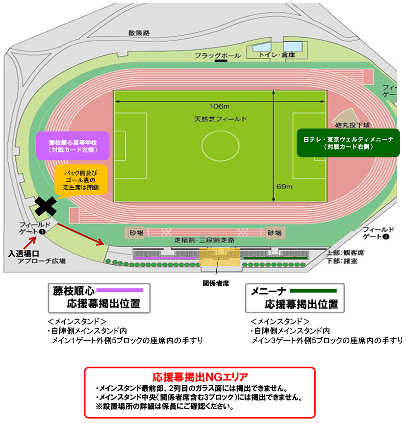・メインスタンド最前部、2列目のガラス面には掲出できません。