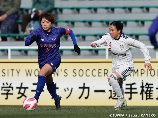 後半は拮抗した展開から始まります。最初のチャンスは東洋大、49分に門脇選手からパスを受けた宮本選手がファーストタッチで前を向きシュートを打ちますが、山梨学院大・GK武田選手がファインセーブ。この後も東洋大がバリエーションのある攻撃でゴールに迫りますが、山梨学院大が人数をかけた守備で押し返します。山梨学院大はゴール前にクロスをいれ、チャンスをつくり出そうとしますが、東洋大も早いプレスバックで対応します。接戦が続きますが、ついに試合が動きます。66分東洋大・門脇選手のシュートを山梨学院大・GK武田選手がセーブしますが、こぼれ球からのパスに反応した東洋大・北川選手が押し込み、待望の先制点を挙げます。東洋大は78分にも精度の高いパスワークから門脇選手が抜け出しチャンスを迎えますが、山梨学院大学・GK武田選手が飛び出してキャッチします。ここから両校ともに攻撃のギアをあげ、山梨学院大は86分に浜田選手がクロスに頭で合わせシュートを放つなど惜しいシーンもありましたが、東洋大のゴールネットを揺らすことはできません。最後まで互角の戦いが続きますがここからスコアが動くことはなく、東洋大が1点のリードを守り抜いて試合終了、初の大会王者となりました。大会MVPには攻撃に勢いをもたらし、決勝ゴールを挙げた、東洋大・北川愛莉選手が選出されました。