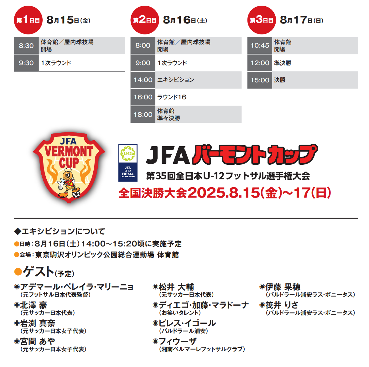 ※詳細は、JFA バーモントカップ 全日本U-12フットサル選手権大会公式ホームページでもご覧いただけます。