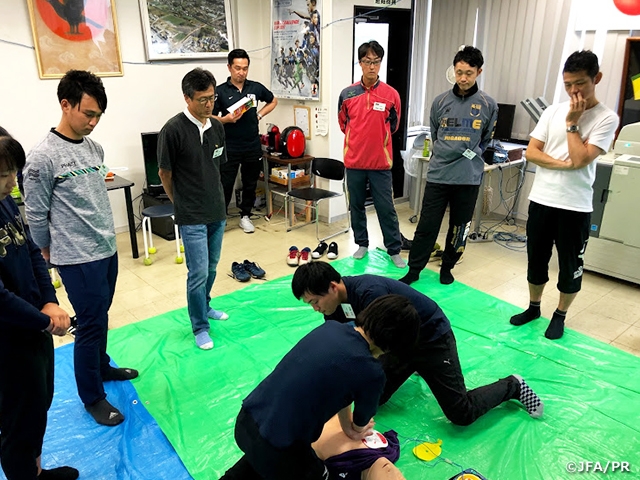 日本サッカー協会(JFA)は、ピッチ上の選手の安全を守ることを第一とした「スポーツ救命ライセンス講習会」と「JFA+PUSHコース」を2017年から実施しております。「スポーツ救命ライセンス講習会」は、(公財)日本スポーツ協会(JSPO)公認アスレティックトレーナーが資格更新のために保有しなければならないBLS(Basic Life Support:一次救命処置)資格取得のための講習会として認定されています。