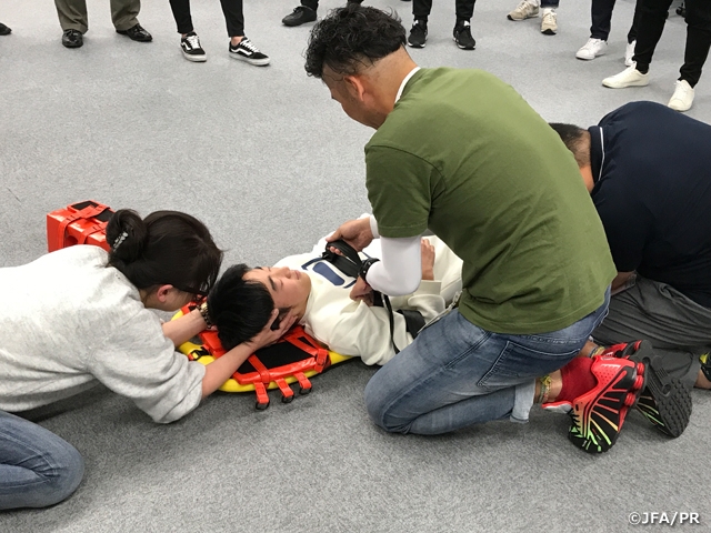 サッカーという競技に寄り添った講義内容で、具体的な状況を想定できたことでより多くの気づきを得ることができました。参加者の多くが現場でご活躍なさっている方々であったこともあり、実際に現場で起きた事象なども交えながら多くの意見交換をすることもでき、とても有意義な時間となりました。”もしも”の時、一人でも多くの方のサポートが大切であると学びました。