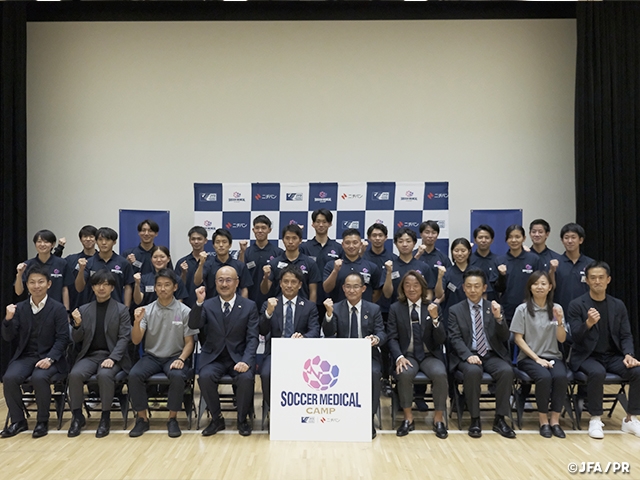 日本サッカー協会(JFA)は、JFA Youth & Development Programme(JYD)のオフィシャルパートナーであるニチバン株式会社と、サッカーに関わるアスレティックトレーナーを目指す方を対象とした育成プロジェクト「SOCCER MEDICAL CAMP 2022」を8月23日(火)に開講し、9月7日(水)、10日(土)、14日(水)、10月12日(水)、22日(土)と全6回の講義を実施しました。「SOCCER MEDICAL CAMP」は、日本サッカー界のメディカル領域で活躍する現役ドクターやトレーナーによる講義や実技を通じて、サッカー界を支える次世代のアスレティックトレーナー(AT)育成を目指すプロジェクトで、2019年、2021年に続いて今年が3度目の開催となります。(※2020年は新型コロナウイルス感染拡大の影響で実施せず)