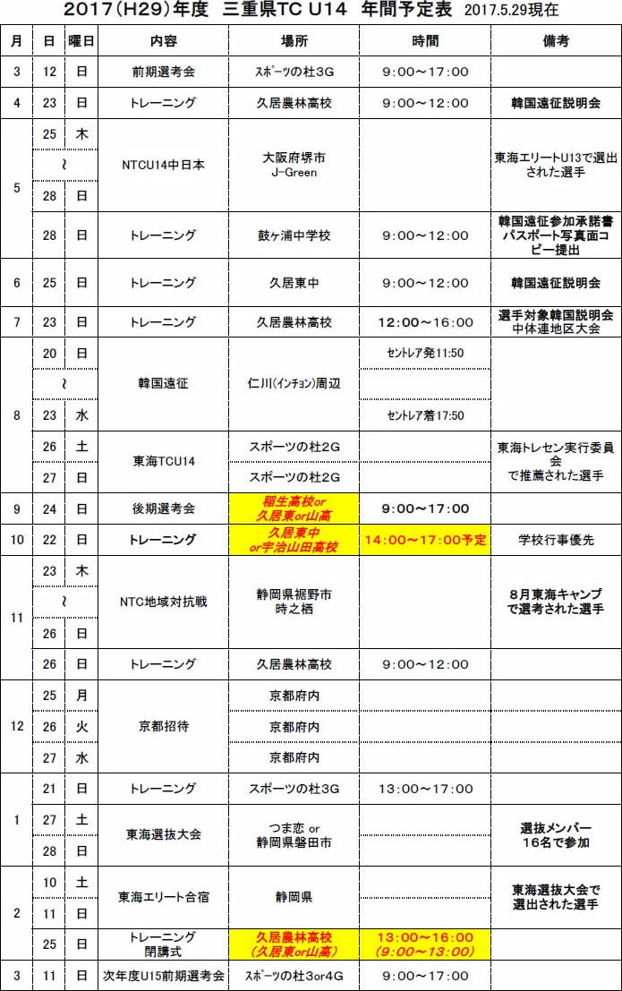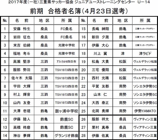 【2017年度】三重県サッカー協会 トレセンU-14 スケジュール&選考会 合格者名簿